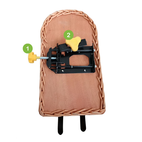 Stap 1: Plaats de fietsmand op de bagagedrager en draai het schroefdraad (nr. 1) aan.